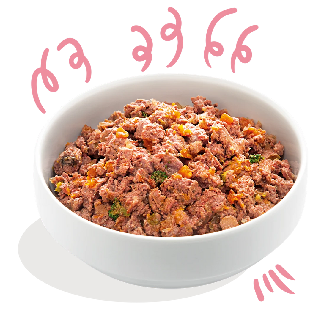 Composition Lamb & Beef: lamb 30%, beef 30%, carrot 2%, minerals, mannan-oligosaccharides (MOS), broccoli (dried) 0.25%, beetroot (dried) 0.25%, linseed oil, fructo-oligosaccharides (FOS), salmon oil, apple (dried) 0.06%, pear (dried) 0.05%, banana (dried) 0.05%, blueberries (dried) 0.05%, dried fennel 0.01%, dried caraway 0.01%, dried yarrow 0.01%, dried blackberry leaves 0.01%, dried mistle 0.01%, dried chamomile blossoms 0.01%, dried gentianroot 0.01%, dried centaury 0.01%