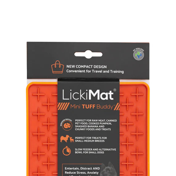 For fun pet interaction, three designs are available. Lickimat Buddy, with its cross maze design, is perfect for thick sticky treats like doggy peanut butter, wet food or soggy biscuits.