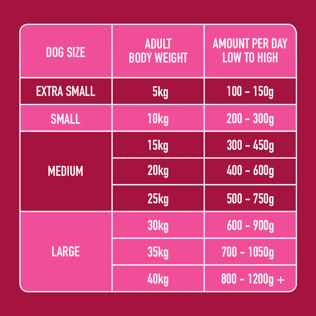 Ingredients: 40% Chicken with Bone, 35% Venison, 5% Beef Heart, 3% Beef Liver, 2% Beef Kidney, 15% Veg & Superfoods (Carrot, Butternut Squash, Broccoli, Kale, Sesame Seeds, Chia Seeds, Sunflower Seeds, Salmon Oil, Wheatgerm Oil, Chicory Powder, Blueberry Powder, Spirulina)
